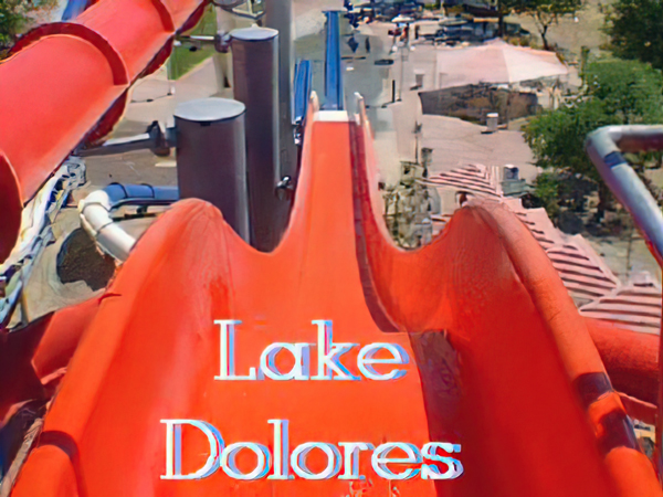 What made Lake Dolores distinctive was not polish but character. It developed in a rough-and-ready roadside tradition, with attractions that felt improvised, daring, and unmistakably of the car-travel era. The park became known for its steep steel slides, stand-up slides that launched riders out above the water, zip-cord rides, and other lake-centered attractions that gave it a reputation very different from the more standardized corporate waterparks that came later. Over roughly twenty-five years, additions turned the site from a desert campground into what advertisements called the "Fun Spot of the Desert."