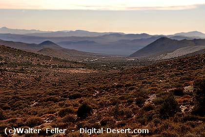 Slate Range, and on into Panamint Valley, up the Panamint Valley West; then North up Wild Rose Canyon, to the summit between Death Valley and